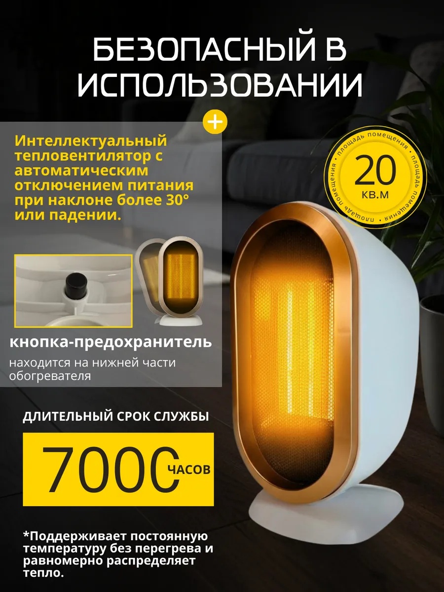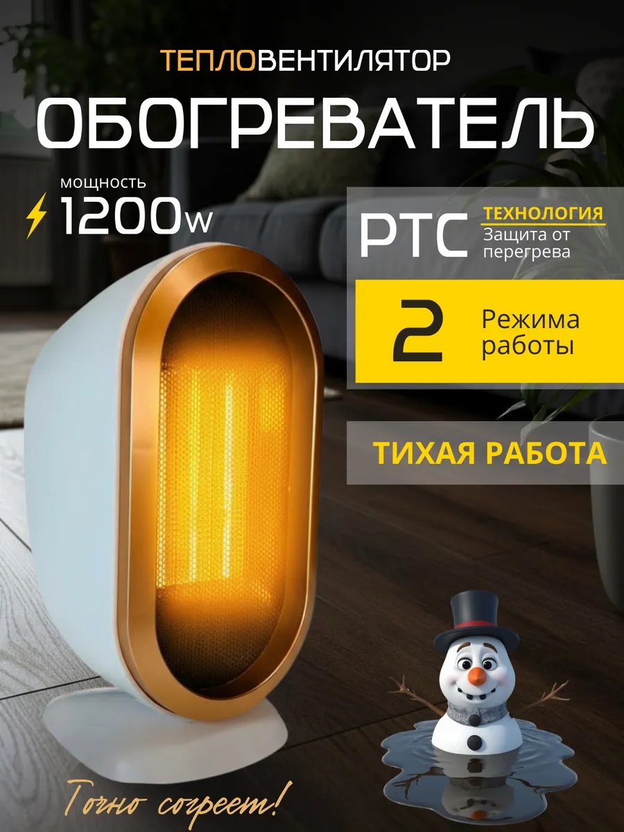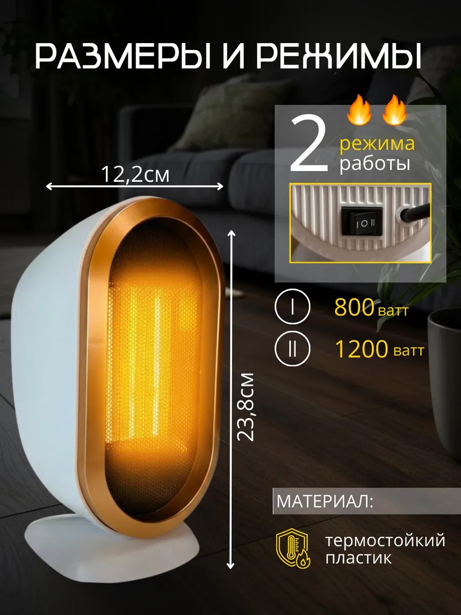 Хотите создать теплую и комфортную атмосферу в доме или офисе? Мини электрообогреватель станет вашим верным помощником в борьбе с холодом! Данная модель отличается рядом преимуществ, которые делают его идеальным выбором для создания уюта в любом помещении. Тепловентилятор напольный работает на основе технологии РТС – это система обогрева, которая обеспечивает высокую эффективность, надежность и долговечность. Два мощных режима: 800 Вт для быстрого прогрева маленькой комнаты или 1200 Вт для более просторной. С помощью заднего вентиляционного канала, тепло настольного ветерка распределяется равномерно по всей площади, не пересушивая воздух.